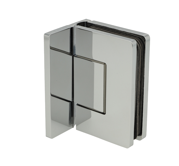 Shower Hinge "Rio", Wall/Glass, CPL, Offset Back Pl, 8-10mm Glass Thickness, W/15 DG Angle Adjustment Function & 15DG Return Function, Brass Material, Hidden Screws. Black Fiber Gaskets: 2 x 1mm & 2 x 2mm Thickness. Load Capacity Pr. Pair: 45kg