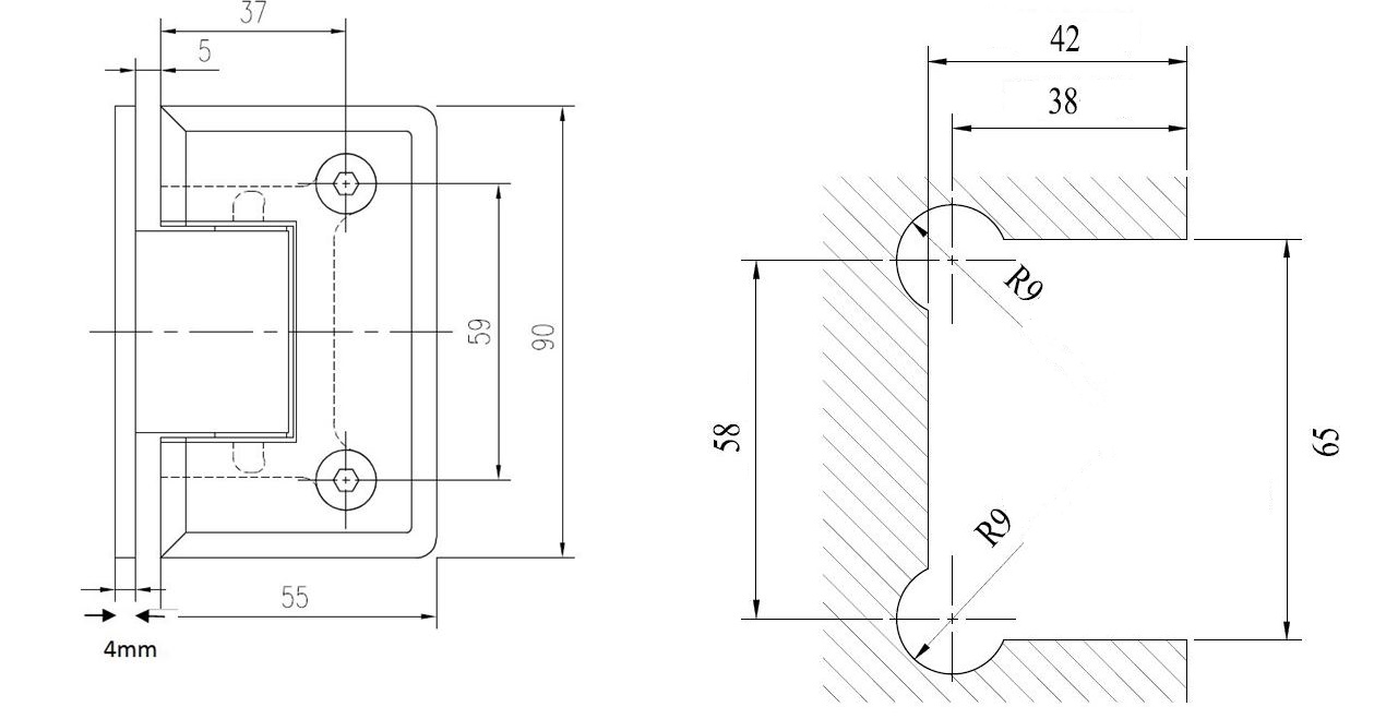 # Shower Hinge "Dus" Wall/Glass, CPL, No Adjustment, Centre Back Plate, 6-10mm Glass Thickness
