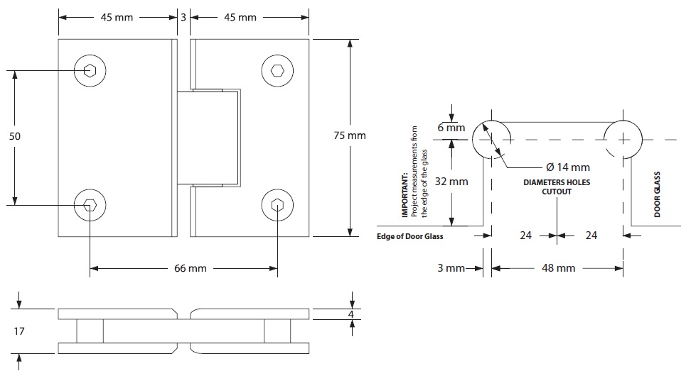 Shower Hinge "Jun" 180DG, CPL, Glass/Glass, 6-8mm Glass Thickness, No Angle Adjustment Function But 25 DG Return Function, Brass Material, Straight Edges