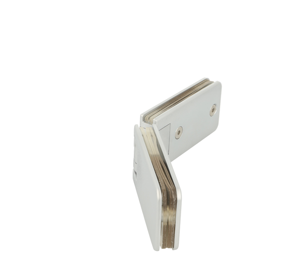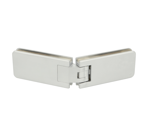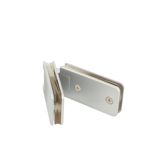 Shower Hinge "King I", 135DG, Alu-Look, Glass/Glass, 6-10mm Glass Thickness, w/Angle Adjustment & 25DG Return Function, Brass Material, Rectagular Shape, Rounded Edges & Corners