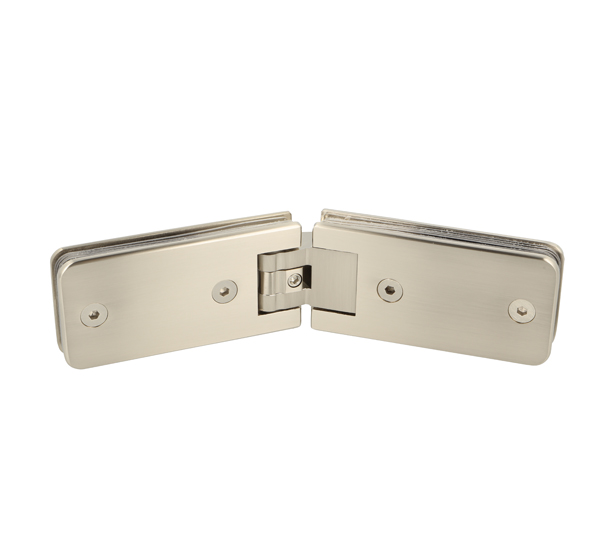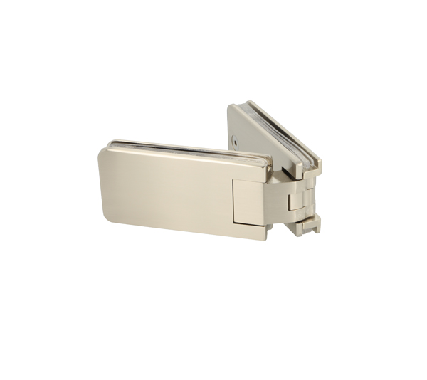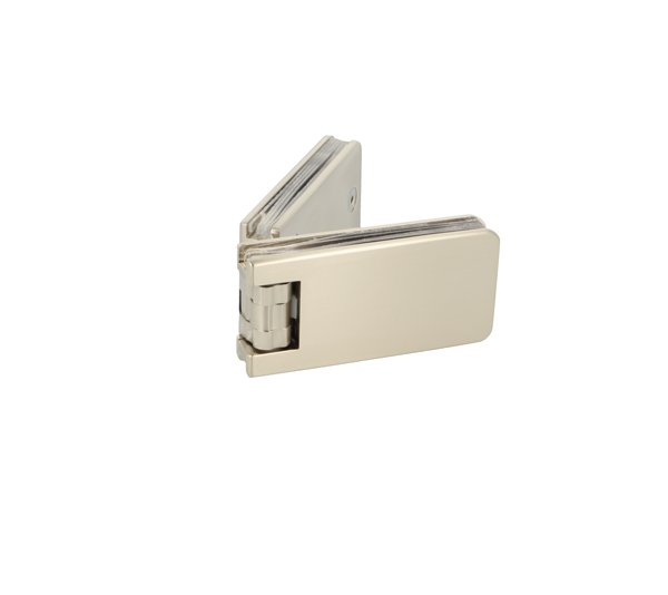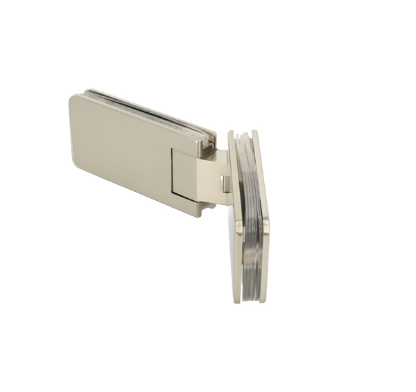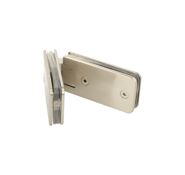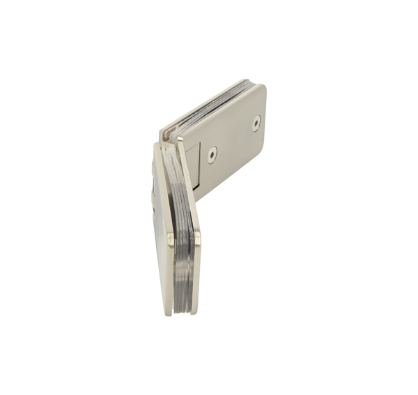 Shower Hinge "King I", 135DG, SS-Look, Glass/Glass, 6-10mm Glass Thickness, w/Angle Adjustment & 25DG Return Function, Brass Material, Rectagular Shape, Rounded Edges & Corners