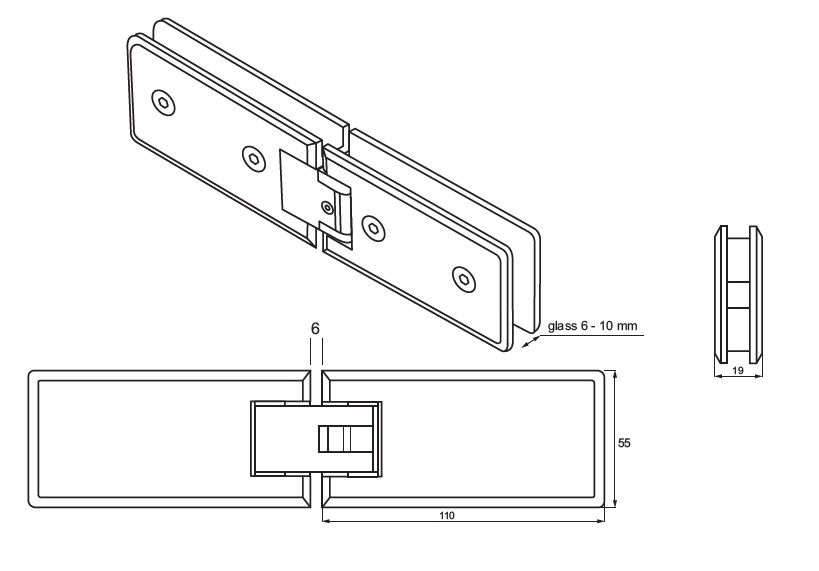 Shower Hinge "Linz", 180DG, Black, Glass/Glass, 6-10mm Glass Thickness,W/15DG Angle Adjustment Function & 15DG Return Function, Brass Material, Rectangular Shape W/Chamfered Edges