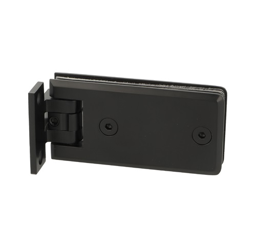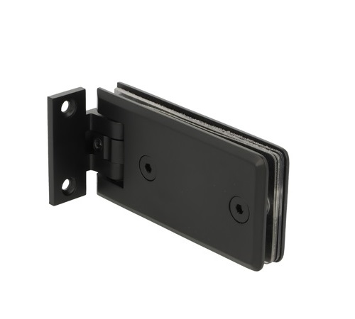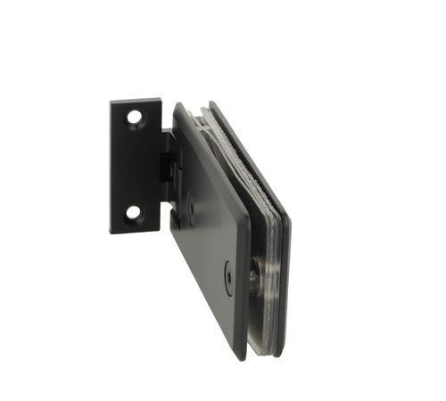 Shower Hinge "Linz", Wall/Glass, Black, Offset Back Pl, 2 Holes, 6-10mm Glass Thickness, W/15 DG Angle Adjustment Function & 15DG Return Function, Brass Material, Rectangular Shape w/Chamferede Edges
