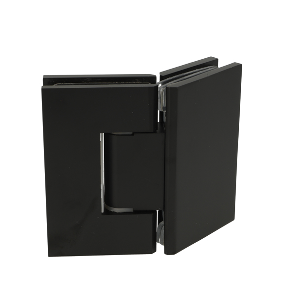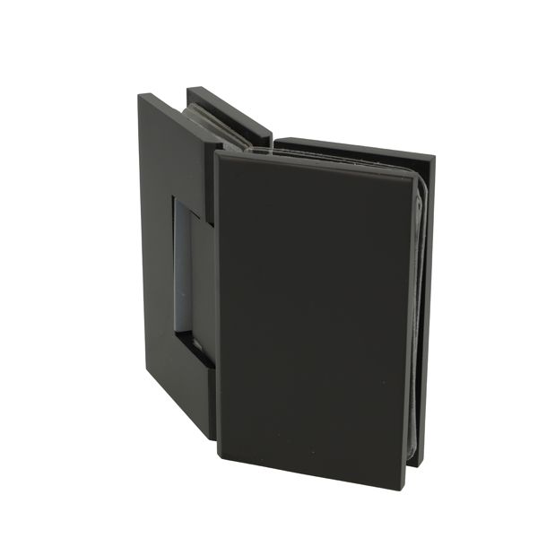 Shower Hinge "Tex III", 135DG, Black Finish, Glass/Glass, 6- 10mm Glass Thickness,W/15DG Angle Adjustment Function & 25DG Return Function, Brass Material, Straight Edges Incl. 4 x Transp. 1mm & 4 x Transp. Cushions 2mm Thickness