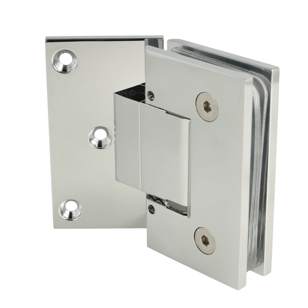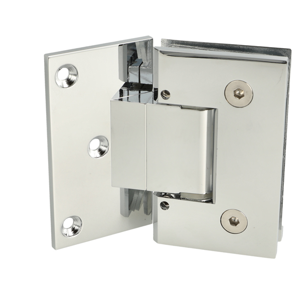 Shower Hinge "Tex III", 135DG, CPL, Wall/Glass, Offset Back Plate., 6-10mm. Glass Thickness, W/15 DG Angle Adjustable Function & 25DG Return Function, Brass Material, Straight Edges. Incl. 2 x Transp. 1mm & 2 x Transp. Cushions 2mm Th.