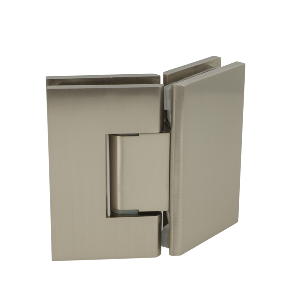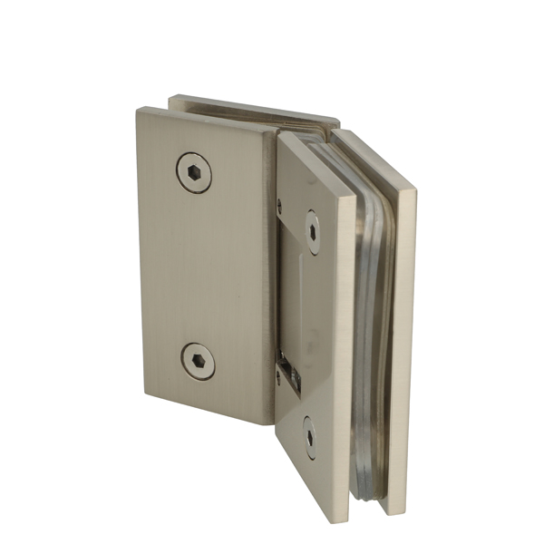 Shower Hinge "Tex III", 135DG, SS-Look, Glass/Glass, 6-10mm. Glass Thickness, W/15 DG Angle Adjustment Function & 25DG Return Function, Brass Material, Straight Edges. Incl. 4 x Transp. 1mm & 4 x Transp. Cushions 2mm Thickness