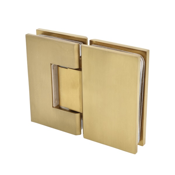 Shower Hinge "Tex III", 180DG, Brushed Brass, Glass/Glass, 6-10mm Glass Thickness, W/15 DG Angle Adjustment Function & 25DG Return Function, Brass Material, Straight Edges Incl. 4 x Transp. 1mm & 4 x Transp. Cushions 2mm Thickness