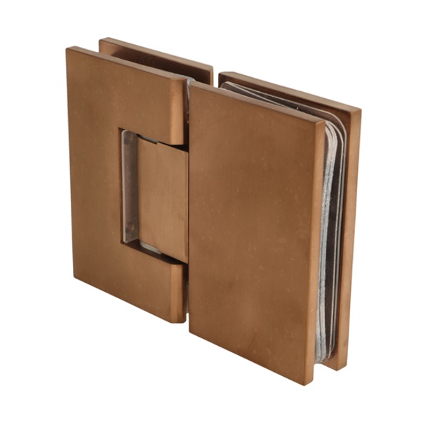 Shower Hinge "Tex III", 180DG, Brushed Copper, Glass/Glass, 6-10mm Glass Thickness, W/15 DG Angle Adjustment Function & 25DG Return Function, Brass Material, Straight Edges Incl. 4 x Transp. 1mm & 4 x Transp. Cushions 2mm Thickness