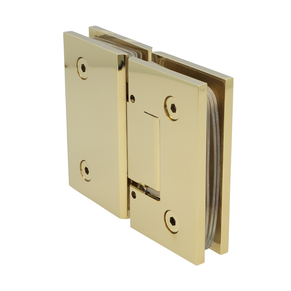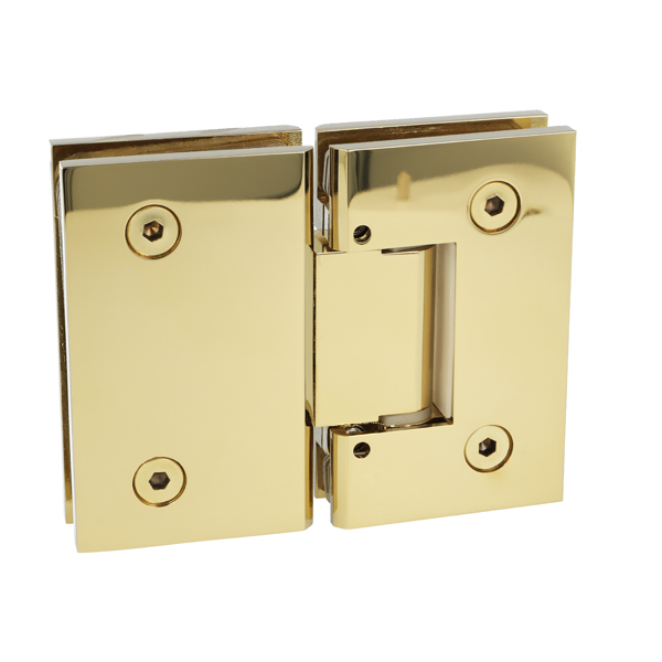 Shower Hinge "Tex III", 180DG, Polished Brass, Glass/Glass, 6-10mm Glass Thickness, W/15 DG Angle Adjustment Function & 25DG Return Function, Brass Material, Straight Edges Incl. 4 x Transp. 1mm & 4 x Transp. Cushions 2mm Thickness