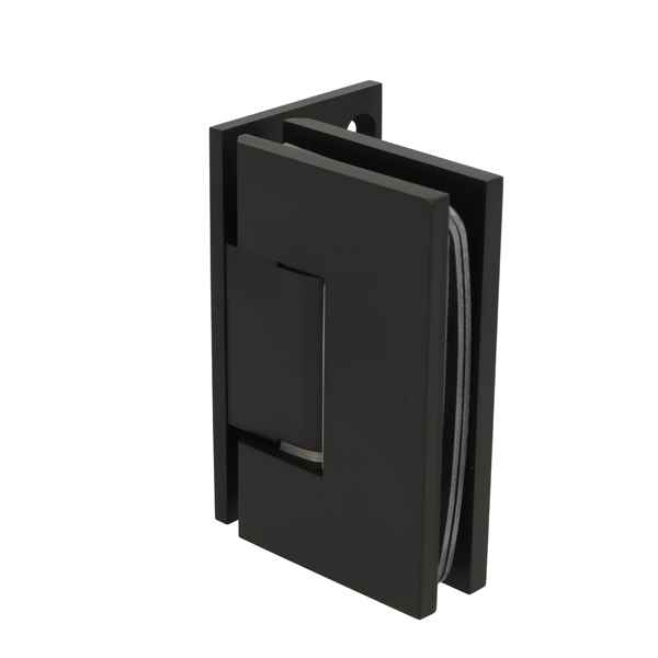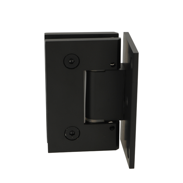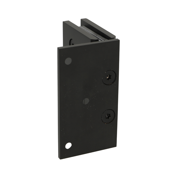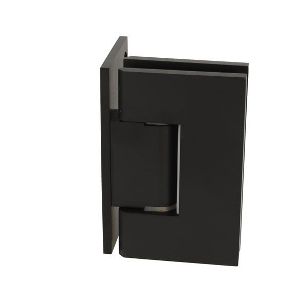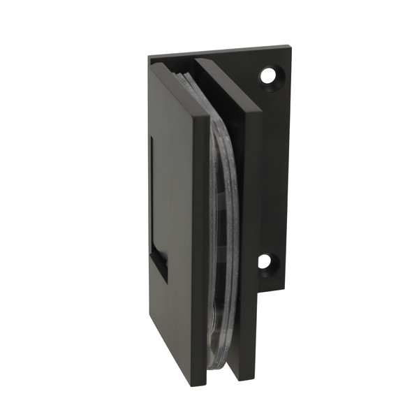 Shower Hinge "Tex III", Wall/Glass, Black Finish, Offset Back Pl, 6-10mm Glass Thickness, W/15 DG Angle Adjustment Function & 25DG Return Function, Brass Material, Straight Edges. 2 x Transp. 1mm & 2 x Transp. Cushions 2mm Thickness