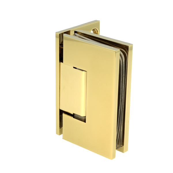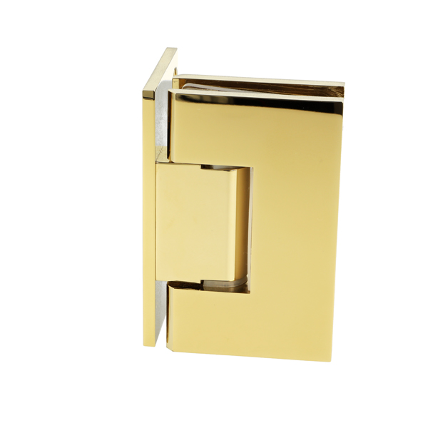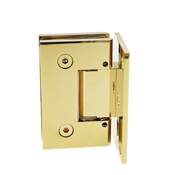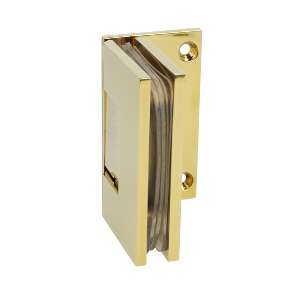 Shower Hinge "Tex III", Wall/Glass, Polished Brass, Offset Back Pl, 6-10mm Glass Thickness, W/15 DG Angle Adjustment Function & 25DG Return Function, Brass Material, Straight Edges. 2 x Transp. 1mm & 2 x Transp. Cushions 2mm Thickness