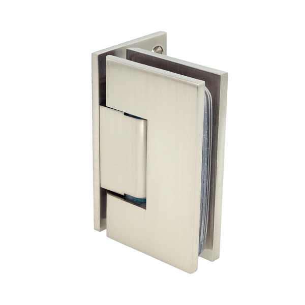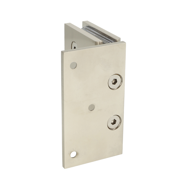 Shower Hinge "Tex III", Wall/Glass, SS-Look, Offset Back Pl, 6-10mm Glass Thickness, W/15 DG Angle Adjustment Function & 25DG Return Function, Brass Material, Straight Edges 2 x Transp. 1mm & 2 x Transp. Cushions 2mm Thickness
