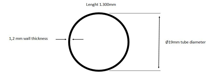SS-304 Tube ø19x1300mm, 1,2mm Thickness, Brushed