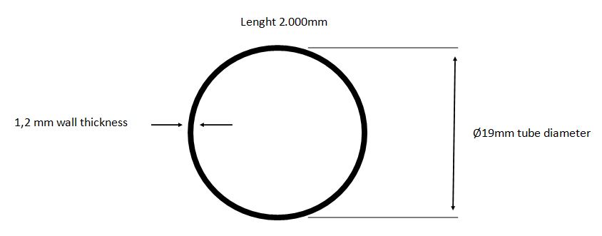 SS-304 Tube ø19x2000mm, 1,2mm Thickness, Polished