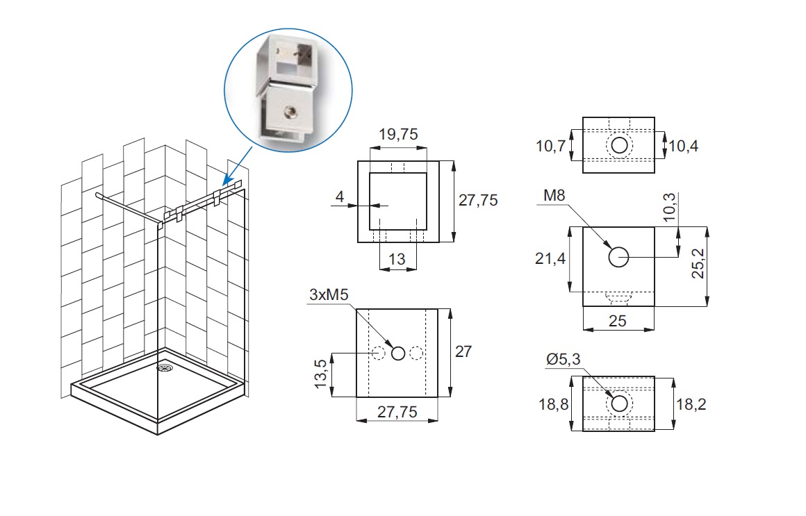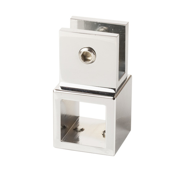 Bar To Glass Centre Bracket,F/19x19mm Square Tube,CPL,8-10mm Glass, W/Open Bar Hole