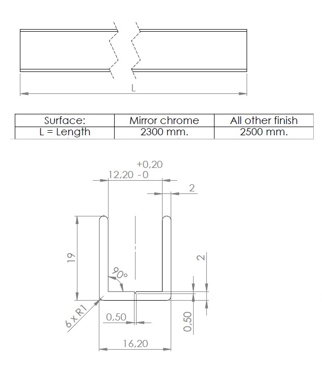 Alu. U-Channel,F/12mm Glass, Brushed Alu,2,5 Mtr,2x19x16,2mm