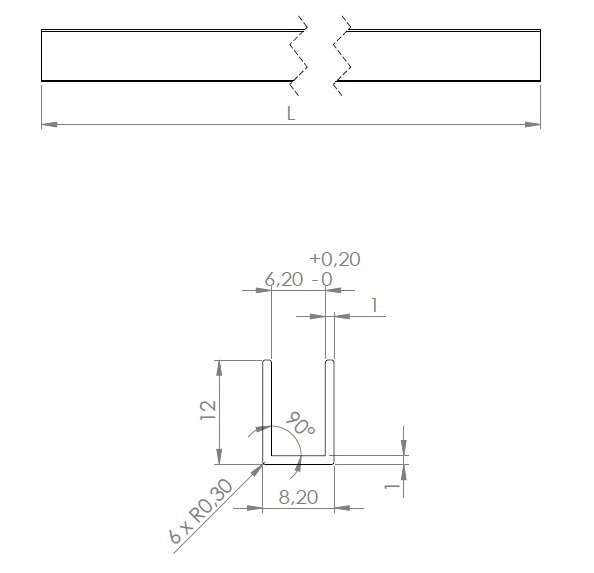 Alu. U-Channel, F/6mm Glass, Polished Alu, 3,0Mtr,1x12x8,2mm (T/H/W)