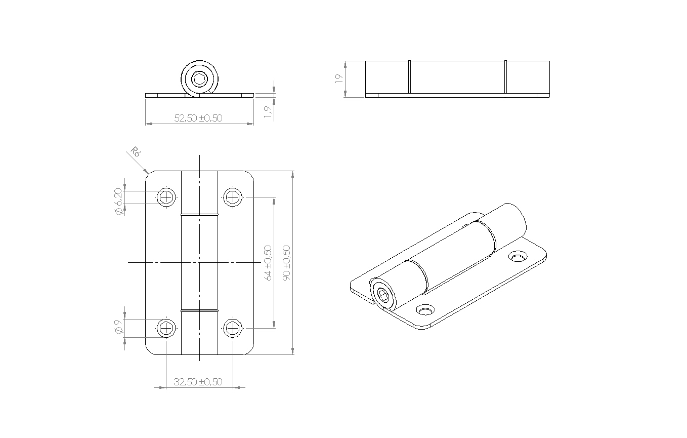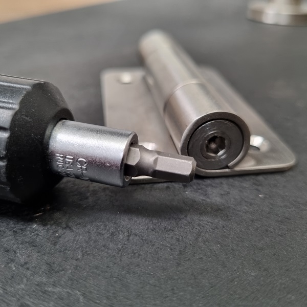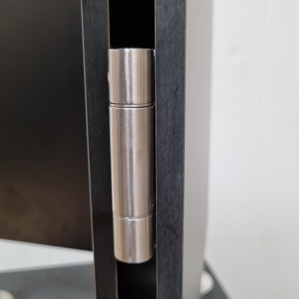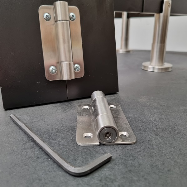 Door Hinge 90x52x2mm, W/Spring Function, SS304 Brushed, Universal, Spring Can Be Adjusted to Either Open Or Close Automatically. Supplied as Standard In Open/Flat Position, F/Inset Doors