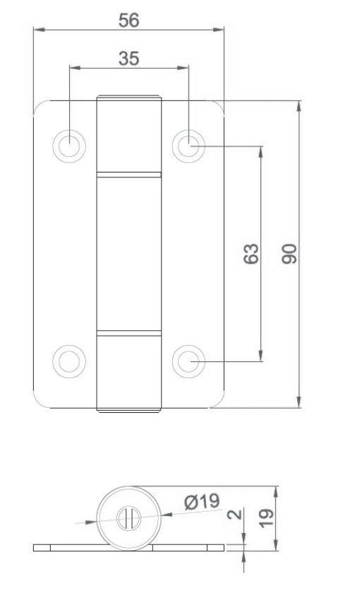 Door Hinge 90x56x2mm, W/Spring Function, Black Finish, SS304 Universal, Spring Can Be Adjusted to Either Open Or Close Automatically. Supplied as Standard In Open/Flat Position, F/Inset Doors