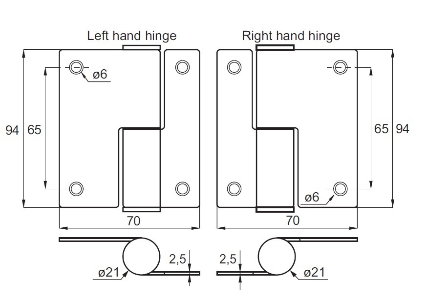 Door Hinge 94x70x2.5mm, Up/Down, SS304 Brushed, RH, Overlay Doors, F/Toilet Cubicles