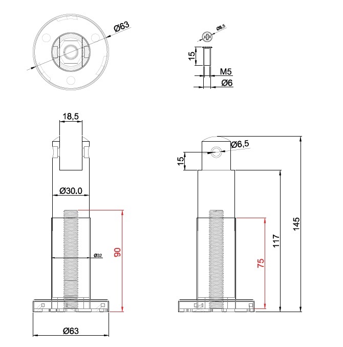 Panel Support Leg 118-175mm, F/10-18mm Panel, Black Finish , SS304 For Toilet Cubicles, Incl. Black Plastic Washers F/ 10, 13 & 16mm Panel Thickness. 2 X 2mm,1 X 3mm & 2 X 4mm