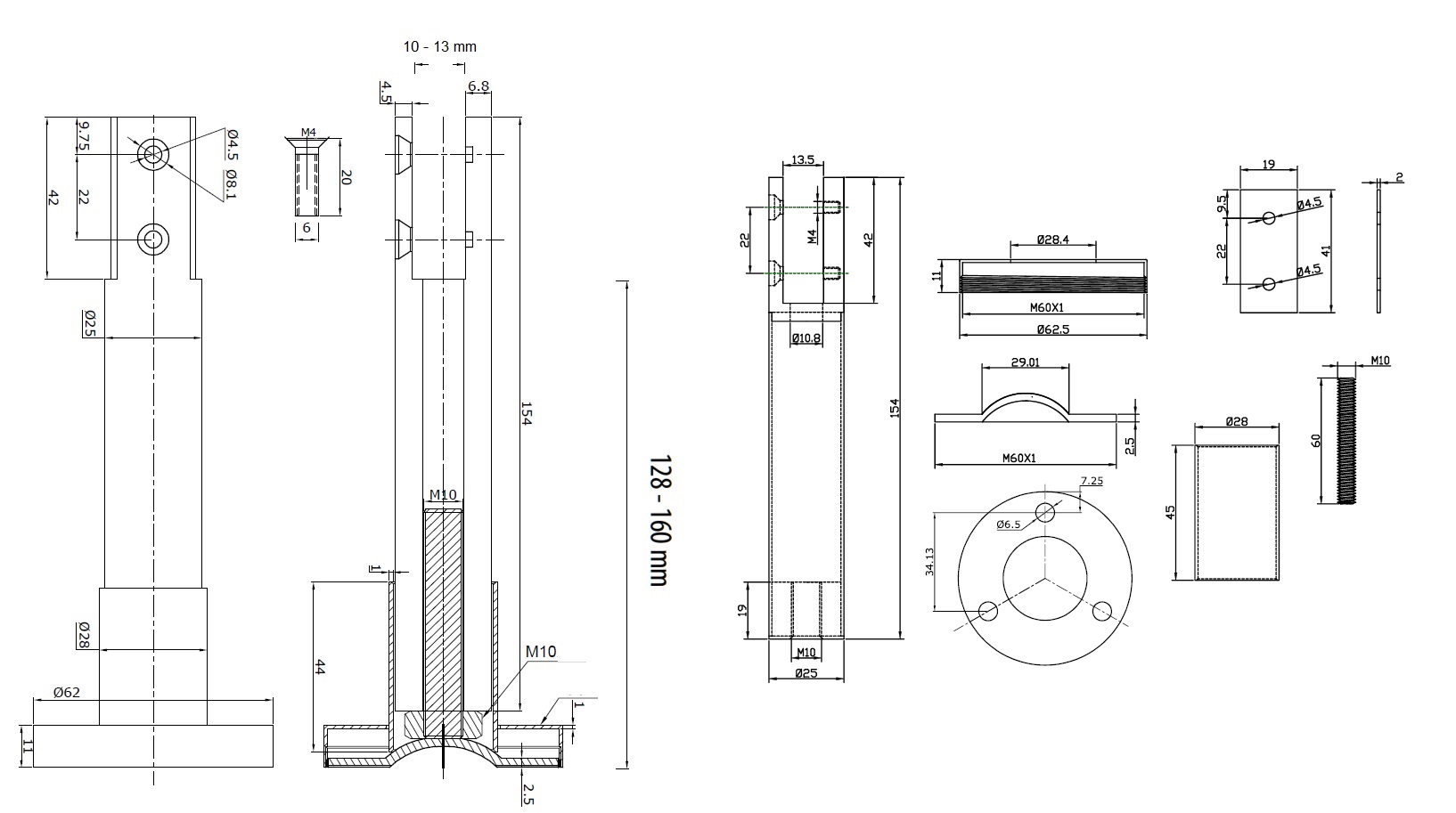 Panel Support Leg 128-160mm, F/10-13mm Panel, SS304, For Toilet Cubicles, W/2 M4 Screws