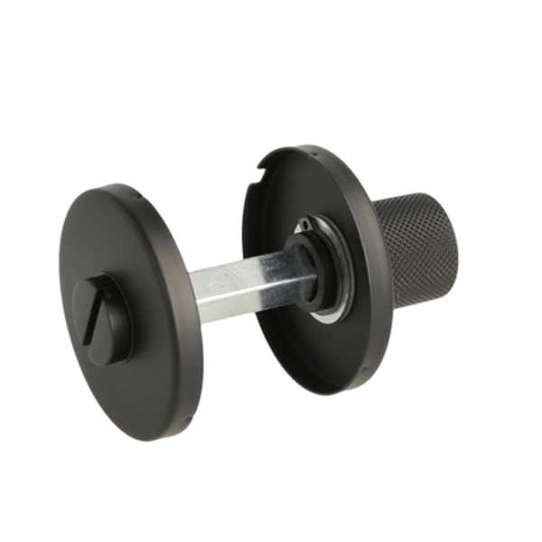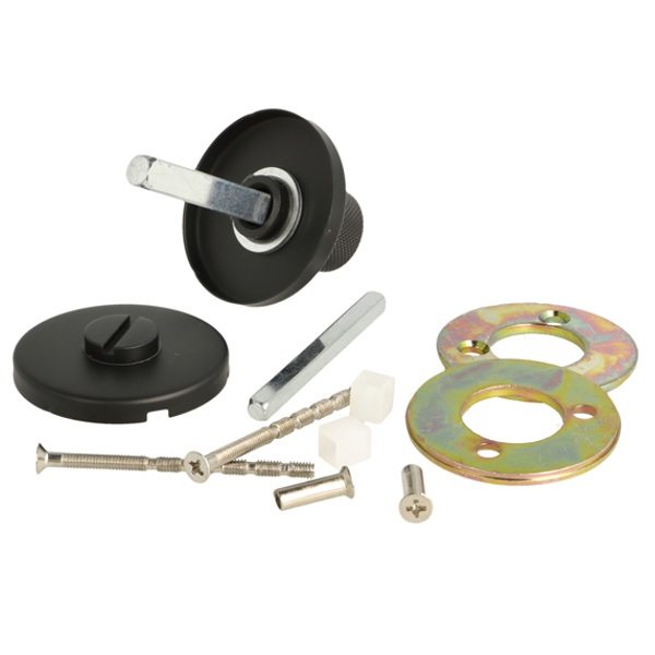 Thumbturn & Release "House" Matt Black, SS-304,W/O Indicator F/38-45mm Doors, CC:27mm Mounting Plate, 2 Pcs. Cut Off Screws M4x60mm + 2 Pcs. Sleeve Nuts M4x16mm, 1 Pcs 5x5x65mm Spindle, 1 Pcs 8x8x65mm Spindle