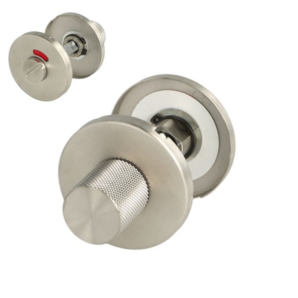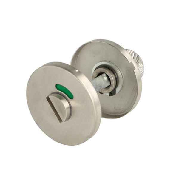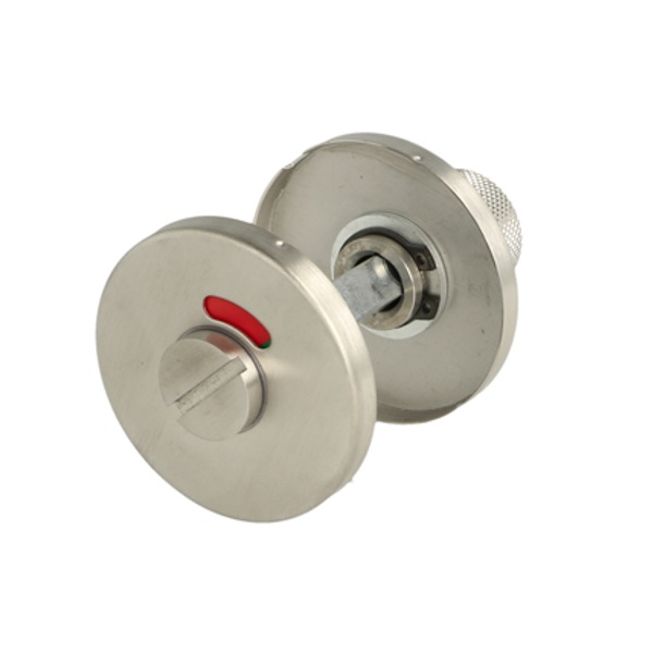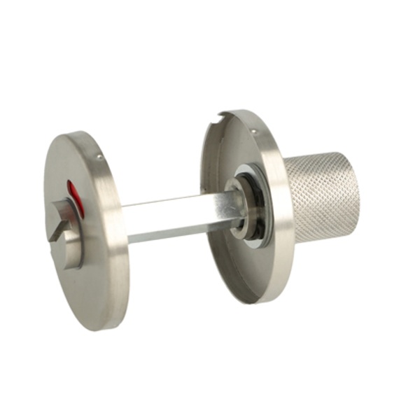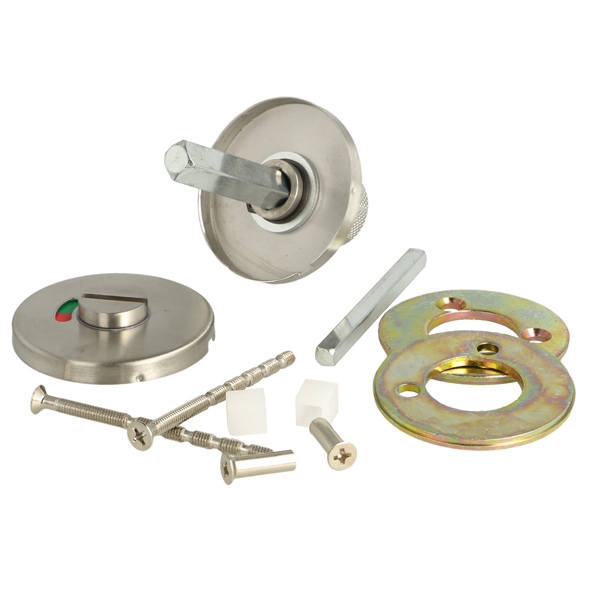 Thumbturn & Release "House" SS-Look, SS-304, W/Indicator, F/38-45mm Doors, CC:27mm Mounting Plate, 2 Pcs. Cut Off Screws M4x60mm + 2 Pcs. Sleeve Nuts M4x16mm, 1 Pcs 5x5x65mm Spindle, 1 Pcs 8x8x65mm Spindle