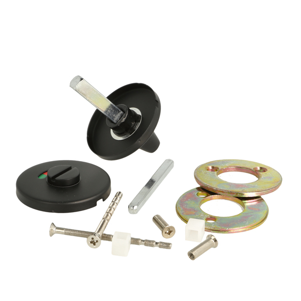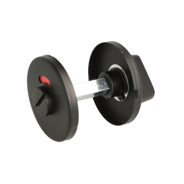 Thumbturn & Release "Pop" Matt Black, SS-304, W/Indicator, F/38-45mm Doors, CC:27mm Mounting Plate, 2 Pcs. Cut Off Screws M4x60mm + 2 Pcs. Sleeve Nuts M4x16mm, 1 Pcs 5x5x60mm Spindle, 1 Pcs 8x8x60mm Spindle