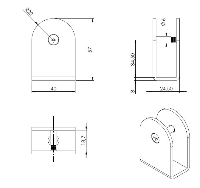 U-Bracket SS-304 F/18mm Panel, F/Toilet Cubicles,Incl. Black EPDM Washers For 10,13 & 16mm Panel Thickness. 2 x 2mm, 1 x 3mm & 2 x 4mm