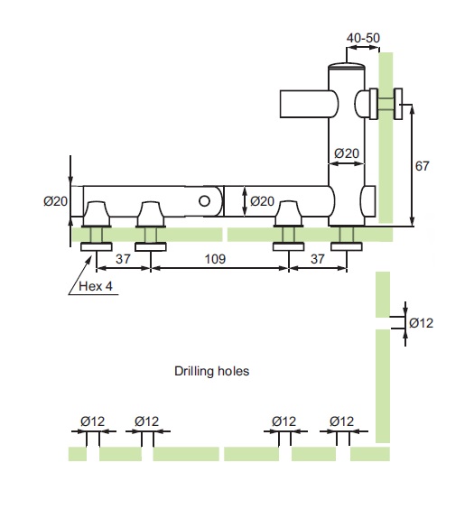 Door Hinge/Angle Bracket F/Glass Cubicles, SS304-Brushed, 8-10mm Glass Thickness, F/Inset Doors, ø12mm Drilling