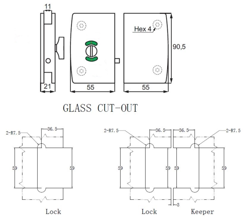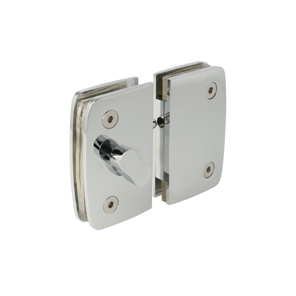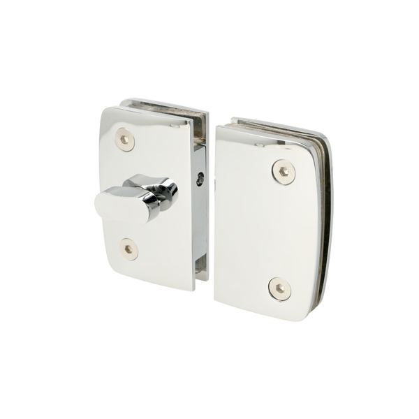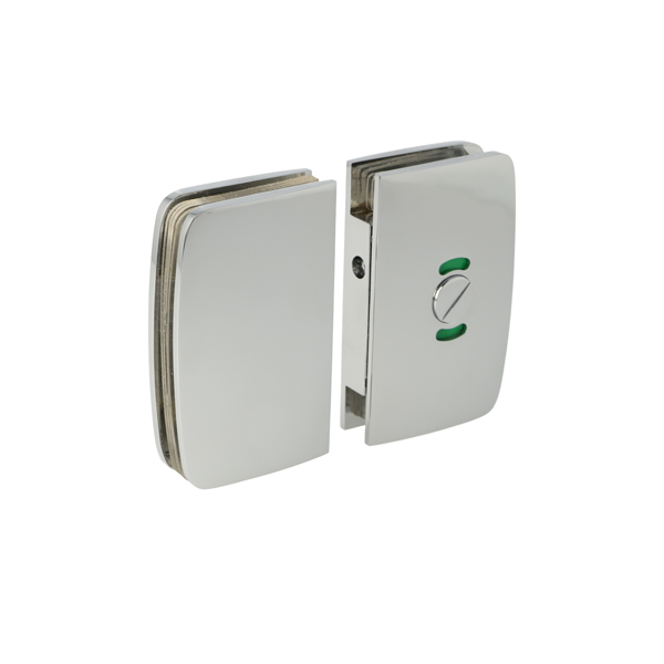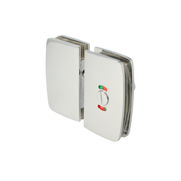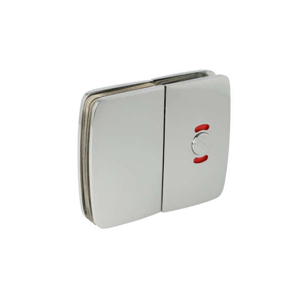 Door Lock F/Glass Cubicle, W/Indicator, Brass, SS-Look, 8-10 mm Glass Thickness, W/Turning Knob, W/Striker Plate