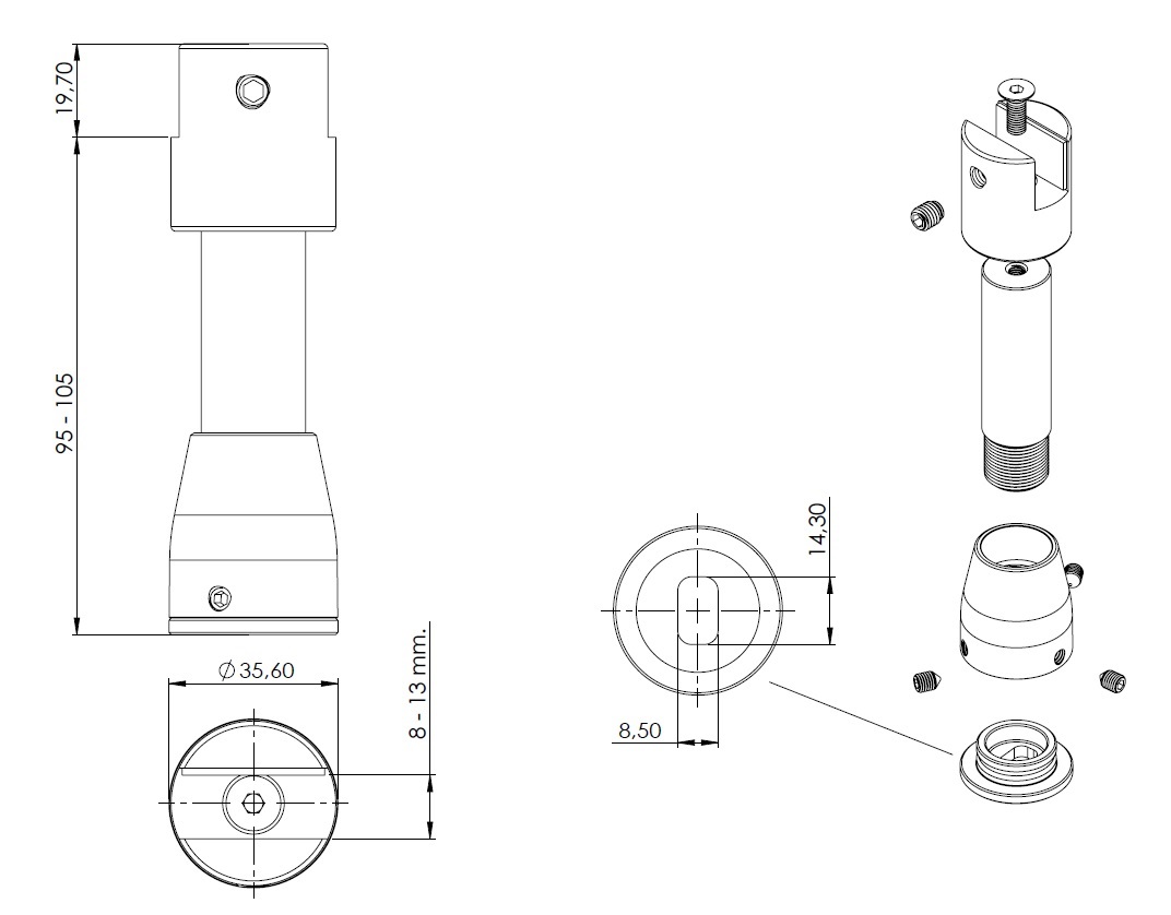 Panel Support Leg 95-105mm, F/8-13mm Glass, SS304-Brushed