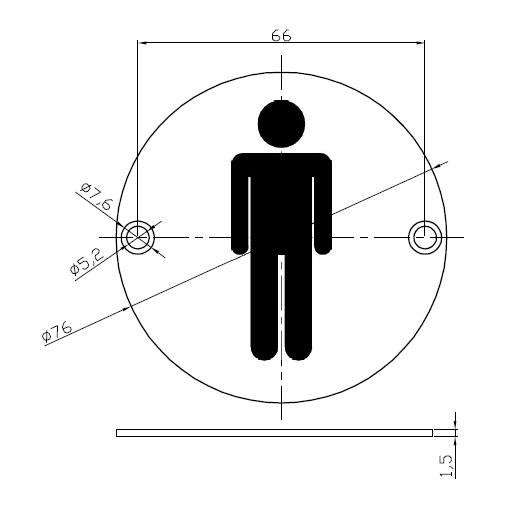 Toilet Sign "Male", ø76x1,5mm, Screw-On, SS201 Brushed, W/ ø3,5x20mm Screws