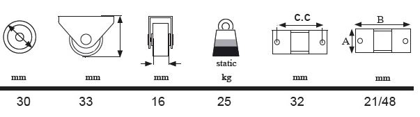 Box Castor ø30mm, 21x48mm Bracket, BZP, MH 33mm,White PP