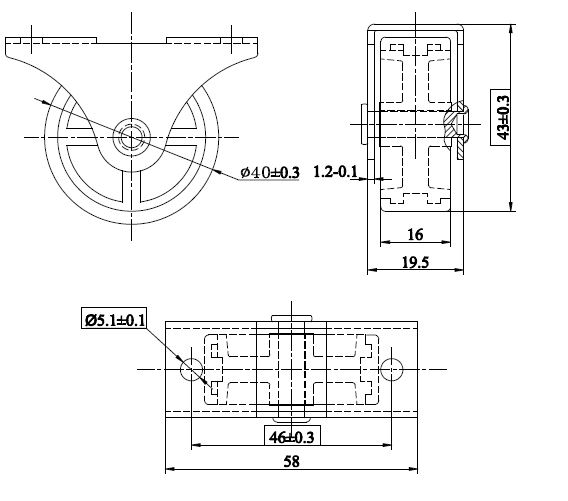 Box Castor ø40mm, 20x58mm Bracket, BZP, MH 43mm,Grey PU Tyre & Black PP Core