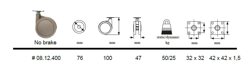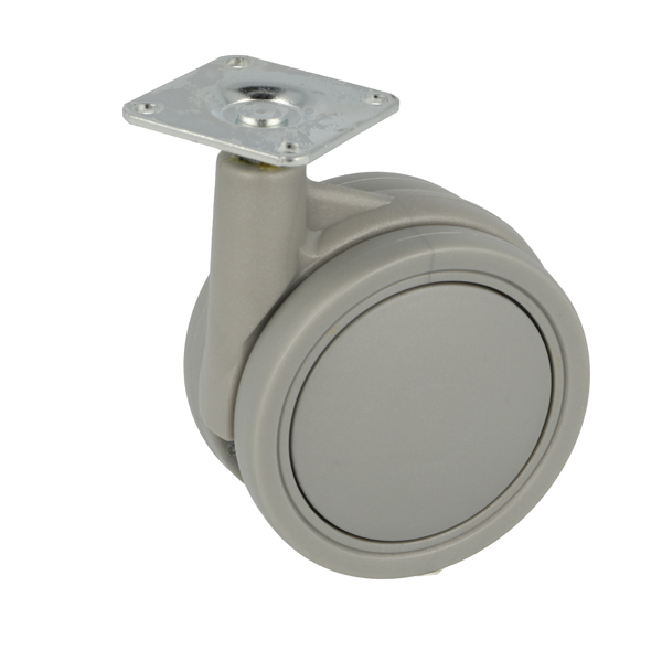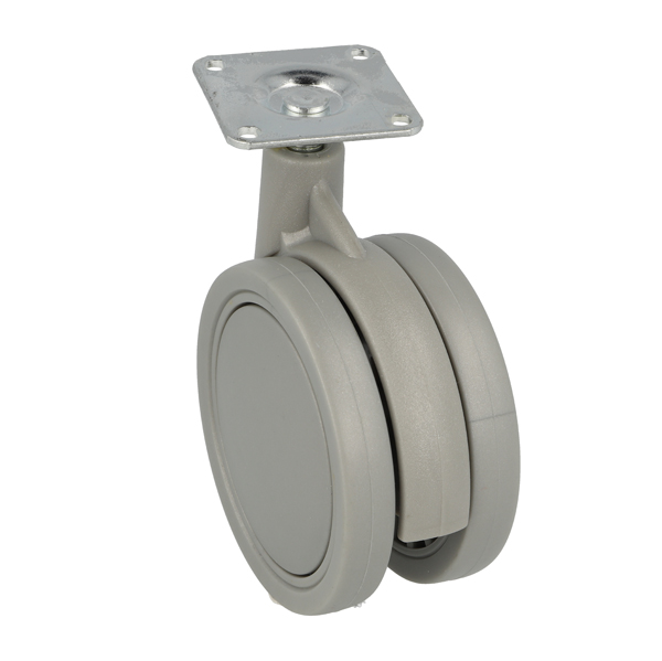 Twin Wheel Castor "Garda" ø76mm, Grey PP, W/PL 42x42mm cc 32 x32mm, Mounting Height:100mm, Dynamic Load Capacity:25Kg, Static Load Capacity: 50Kg