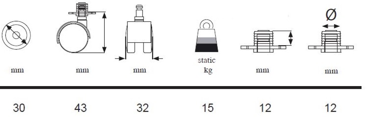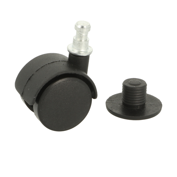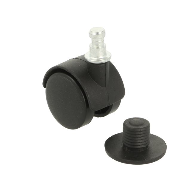 Twin Wheel Castor ø30mm, Black, W/Knock-In Socket ø12x12mm ø12,5x12mm Height