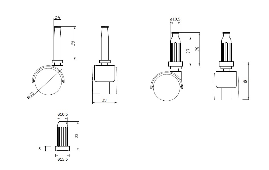 Twin Wheel Castor ø30mm, Black, W/Nylon Socket ø10.5x30mm