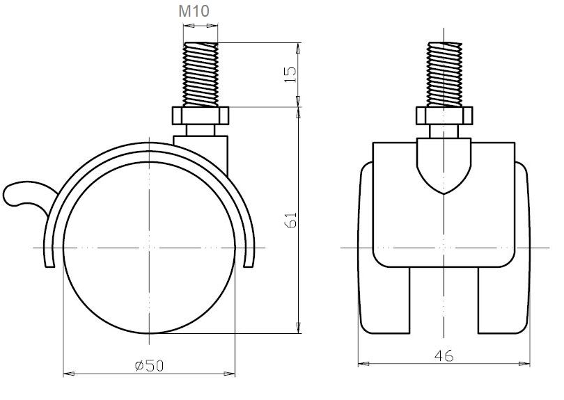 Twin Wheel Castor ø50mm, Black, W/Brake, Stem M10 x 15mm, Mounting Height: 60mm