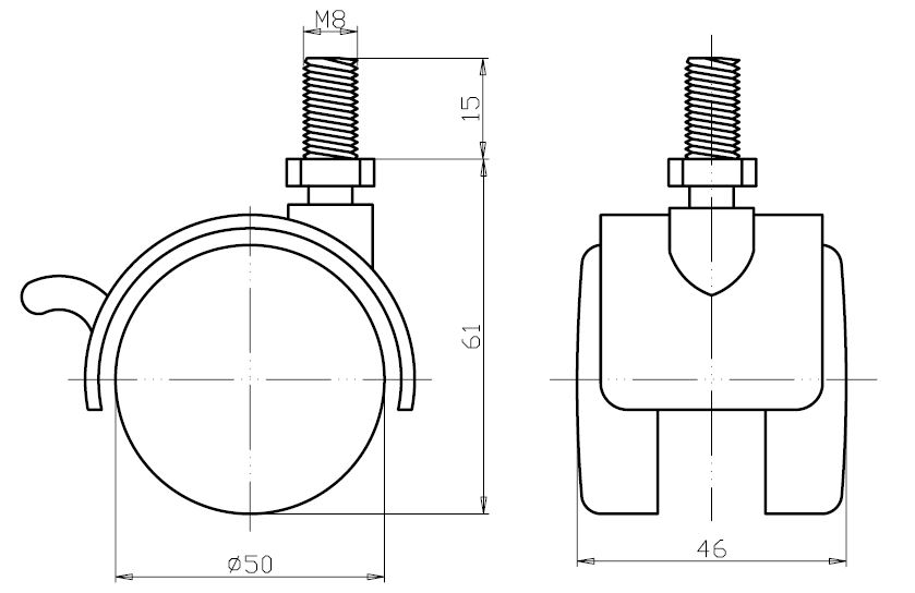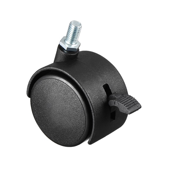 Twin Wheel Castor ø50mm, Black, W/Brake, Stem M8 x 15mm, MH: 60mm
