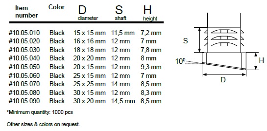 Insert Glide, Angled 10 Degree, Size 20x20mm, PE, Black