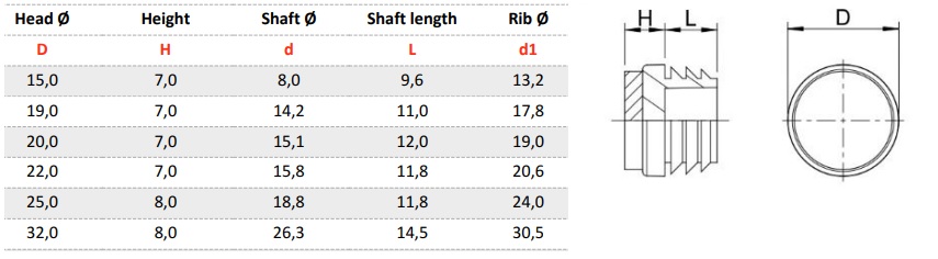 Insert Glide W/Felt, For Round Tubes, Diam 15mm, PE, Black