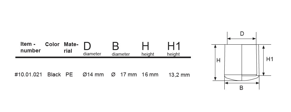 Plastic Cap For Round Tubes, Diam 14mm, PE, Black
