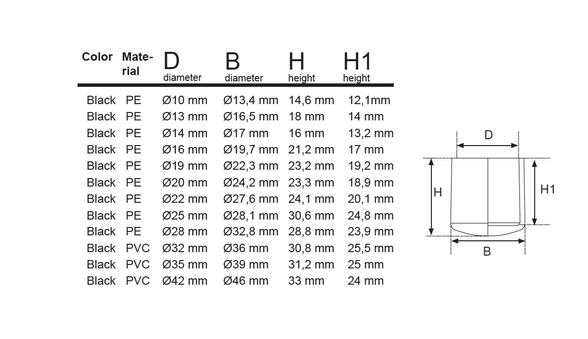 Plastic Cap For Round Tubes, Diam 28mm, PE, Black
