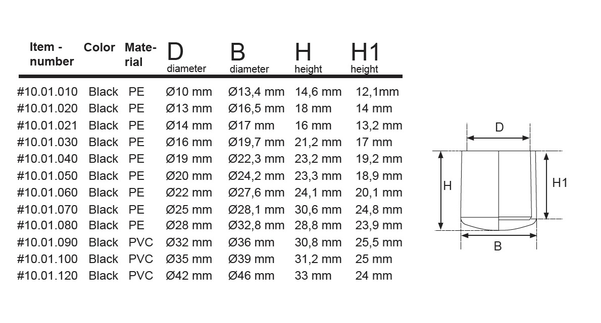 Plastic Cap For Round Tubes, Diam 35mm, PVC, Black