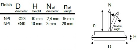 Norfolk Nail-on Glide ø23mm,Steel NPL,ø2,4x15mm Nail,W/Black Rubber Silencer Cushion