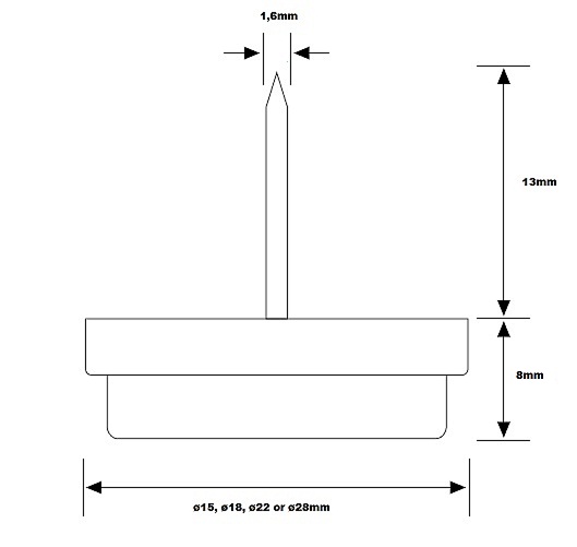 Plastic Tack W/Felt, Nail-On Gilde, ø 15x8mm,White,ø1,6x13mm