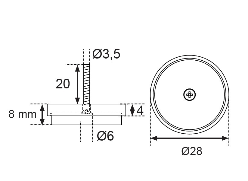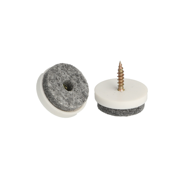 Plastic Tack W/Felt, Screw-On Glide, ø 28x8mm, White, Screw