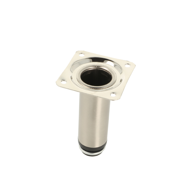 Metal Leg "Anna", ø30x100mm, SS-Look, W/Plate 60x60mm, cc: 44x44mm, W/Adjustable Glide w/Hex Nut, 10mm Height Regulation